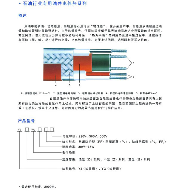 - 產品名稱:石油行業專用油井電伴熱帶
